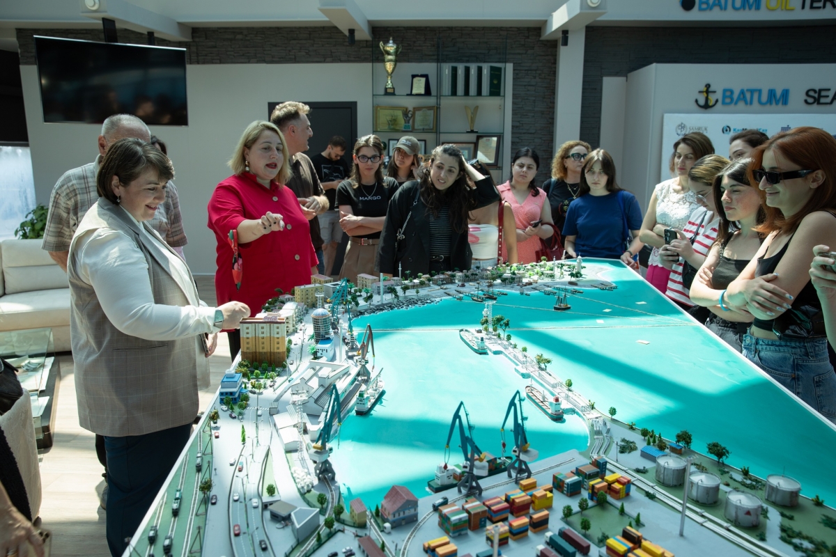 მომავალმა გიდებმა ნავსადგურის საექსპოზიციო სივრცეში გამოფენილი ფოტო-ვიზუალური მასალა დაათვალიერეს და პორტის მუშაობის ძირითად პრინციპებს გაეცნენ.