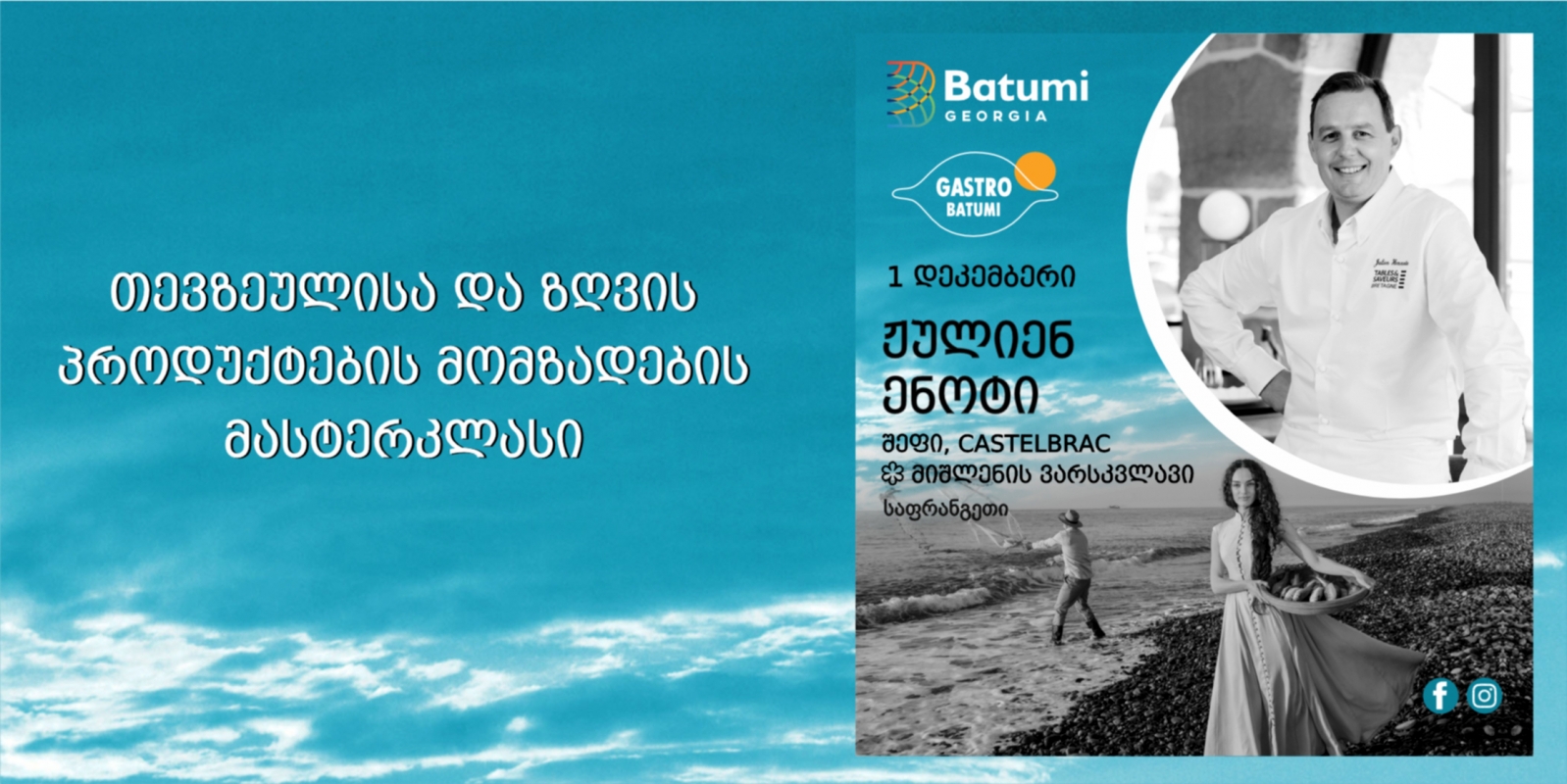 „თევზეულისა და ზღვის პროდუქტების მომზადების მასტერკლასის" დროს საფრანგეთიდან მოწვეული შეფი ჟულიენ ენოტი დაამზადებს ოთხ სხვადასხვა კერძს: კეფალი ვაკამეს გარნირით და ციტრუსის სოუსით; სიბასის კომფიტური ყვავილოვანი კომბოსტოს გარნირითა და თეთრი ღვინის სოუსით; კრევეტის სევიჩე წიწიბურას ფქვილის ტარტით და ჭარხლის საწებლით; წითელი ხონთქარი გოგრის კონფიტურით, მანდარინის მარმელადითა და ციტრუსის სოუსით.