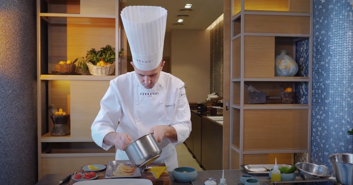 გამომცხვარი კრევეტები მანდარინის სოუსით